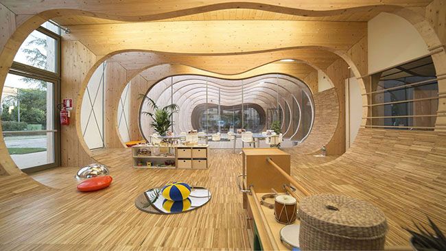 Lontano dal voler essere una riproduzione acritica del modello nordeuropeo delle scuole all’aperto – la Danimarca, per esempio, conta 700 “scuole nella foresta”, con un clima decisamente più severo del nostro – e facendo riferimento a studi che dimostrano come il contatto con la natura renda i bambini meno inclini a contrarre malattie, più socievoli e dotati di maggiore capacità di concentrazione, oggi, l’obiettivo è che la nuova scuola sia un ecosistema composto da spazi di relazione, grandi corti e luoghi aperti anche per la didattica e non solo per l’intervallo. Nelle aree verdi si possono disegnare padiglioni semi-coperti o con protezioni rimovibili a seconda delle stagioni e dell’attività, piccoli spazi attrezzati per laboratori, ma anche per lavori di gruppo, e come spazi riservati per gli insegnanti, dunque multifunzione.