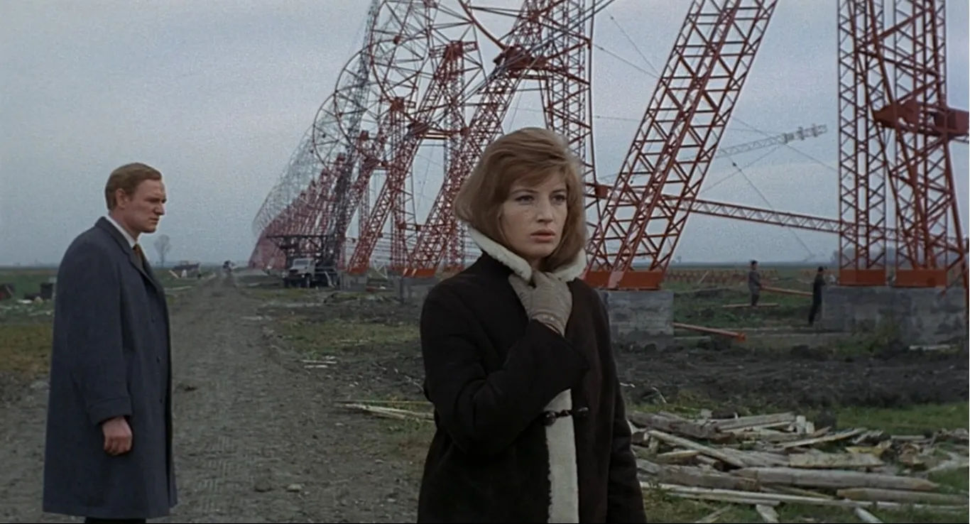 Giuliana incarna il correlativo oggettivo, o meglio il correlativo emotivo, di questa tristezza inconsolabile, che si manifesta radicalmente nel suo personaggio, descrivendo con oltre cinquant’anni di anticipo la crisi esistenziale quotidiana che stiamo vivendo oggi, assorbiti dai nostri pensieri sull’inevitabilità di ciò che ci aspetta. In questo senso, il corpo e il volto di Monica Vitti rappresentano il cuore pulsante di una narrazione che non è fatta di azioni, di eventi, ma consiste in un’analisi psicologica che si fa sempre più penetrante ad ogni gesto, espressione o sguardo dell’attrice romana. Scavando nella nevrosi di Giuliana, il film chiarisce che essa non è la conseguenza di un incidente in cui è rimasta coinvolta in passato, come sostiene il marito Ugo, ma nasce da un turbamento molto simile a quello che scatena l’eco-ansia. È la paura di scivolare passivamente lungo la propria vita senza impulsi o prospettive, sentendosi completamente persa, vittima di un labirinto interiore senza via d’uscita, a tormentare Giuliana, e non saranno né l’affetto per il figlio, che trascina con sé lungo le strade di Ravenna, come fosse una protesi del suo braccio; né tanto meno l’amara e fugace relazione extraconiugale che stringerà con Corrado, un collega del marito, ad offrirle un appiglio capace di conferire un significato alla sua esistenza.