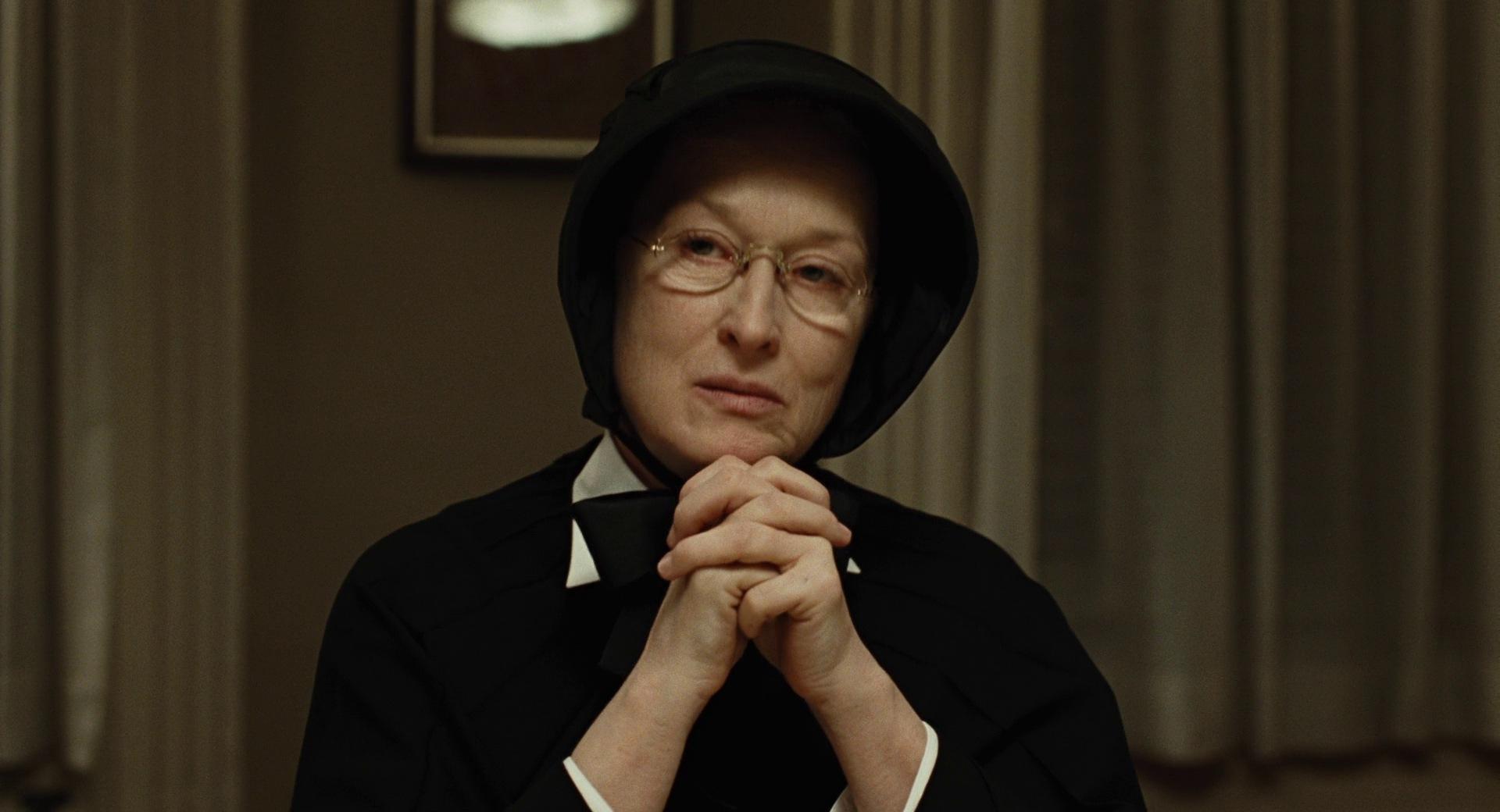 Il dubbio, dunque, è il teatro di un duplice processo: quello fallace in cui Padre Flynn e Suor Aloysius attaccano l’uno le idee dell’altra, impossibile da concludere; e quello che lo spettatore fa spontaneamente al sistema corrotto in cui si muovono entrambi, uno dalla posizione di assoluto privilegio che spetta ai preti, l’altra da un grado più basso delle gerarchie ecclesiastiche, dove l’esposizione al sopruso è già qualcosa di tangibile – tanto che, pur essendo poche le suore che denunciano, anche queste subiscono spesso violenze e abusi di potere. Ciò che viene percepito come indiscutibilmente condannabile, alla fine del film, è infatti il meccanismo che ignora il dubbio di Suor Aloysius, invece di provare a risolverlo con un’azione orientata alla giustizia, soffocando i suoi sospetti in un silenzio obbligato, che mira a proteggere la Chiesa invece che le sue possibili vittime.