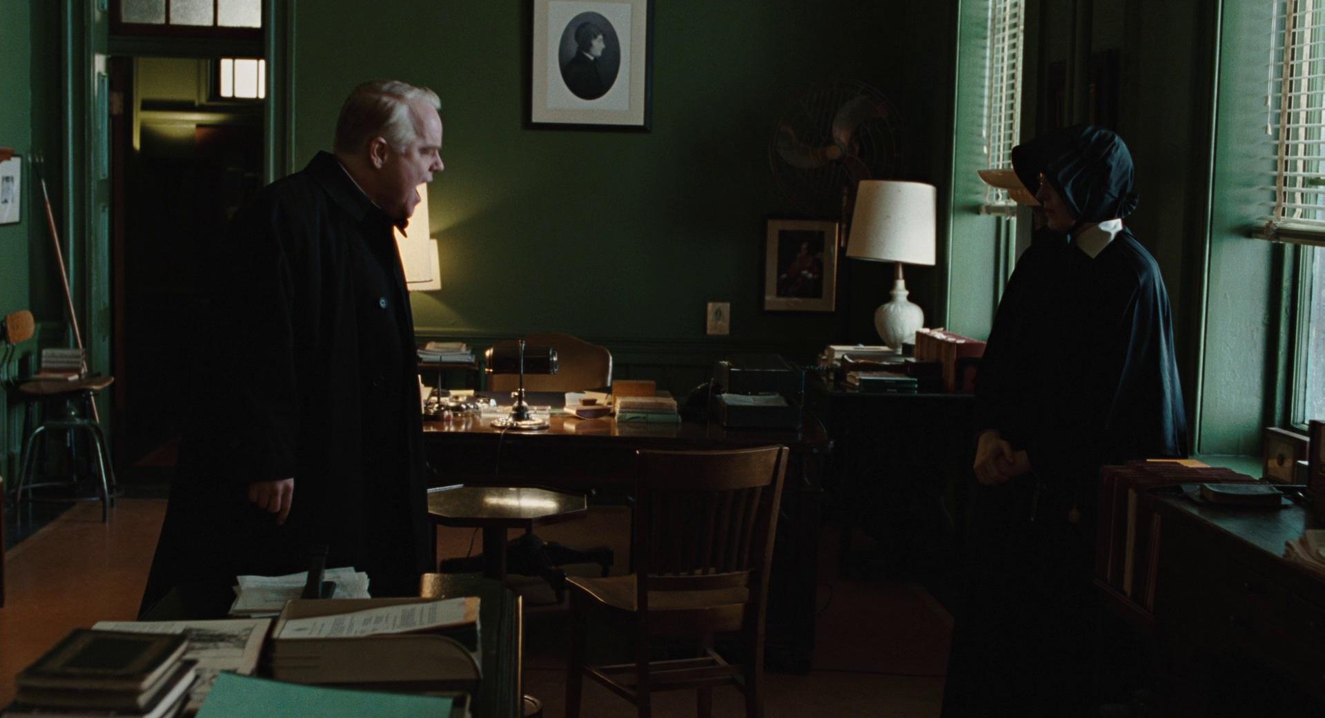 A rendere il film una reale esperienza di dubbio è proprio il fatto che il sospetto non venga mai né confermato né smentito definitivamente, costruendo così un limbo d’incertezza che da un lato mi ha fatto percepire come violento qualsiasi contatto fisico tra il parroco e Donald, lo studente a cui è più legato, ma allo stesso tempo mi ha spinta a diffidare anche dalla furia accusatoria di Suor Aloysius, che macina la materia dell’equivoco per renderla motivo di condanna, partendo da dettagli e pretesti che spesso non sembrano meritare l’appellativo di “prove” – l’alito del ragazzo che sa di vino rosso, il prete che ripone una maglietta nel suo armadietto, l’affetto che li lega e che tutto a un tratto si fa rancido. Il conflitto aperto tra il parroco e la monaca, infatti, sembra mosso da un contrasto ideologico più che da un autentico bisogno di giustizia, perché oppone due visioni incompatibili del cattolicesimo – una più liberale, preludio del Concilio Vaticano II, l’altra fedele a certi principi ritenuti indiscutibili.