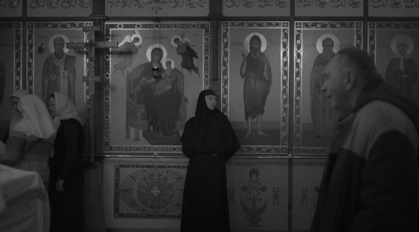 Attraverso un linguaggio visivo ipnotico, il film ci porta negli spazi chiusi e ombrosi di un convento alle porte di Minsk. “Lavorare all’interno di comunità religiose ci ha permesso di esplorare il tema intangibile della fede, un argomento che ci affascina reciprocamente, e di sviluppare un’estetica visiva distintiva che si esprime pienamente in questo film”, hanno dichiarato le registe. Ma oltre alle immagini, anche i suoni rarefatti e i silenzi ci lasciano sprofondare lentamente nel ritmo della vita monastica: le campane che risuonano, le suore che preparano la comunità alla Pasqua, i sacerdoti che si immergono nelle acque gelide per celebrare l’Epifania. Tra paesaggi affascinanti resi minimali dalla neve e interni mistici, attraverso una narrazione profondamente intima e sussurrata, Madre Vera svela il passato tragico che l’ha condotta al convento e la sua speranza di trovare prima o poi una vera libertà, la salvezza.