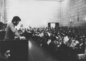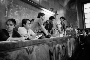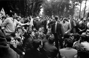 Perché questo fu il Sessantotto prima di tutto: un sonoro, fumoso, irruente duello verbale tra generazioni. Parole a flusso continuo, declamate nelle aule occupate delle università, pitturate a caratteri cubitali su muri e striscioni, ciclostilate su volantini, affisse sui tazebao, urlate da un lato all’altro della tavola nel tinello delle case borghesi tra genitori e figli. Un’esplosione verbale forse inevitabile: i confitti identitari e generazionali avevano covato a lungo sotto l’apparente spensieratezza degli anni del boom. Per i vent’anni precedenti il popolo italiano aveva pensato per lo più a dimenticare due guerre mondiali, ricostruire il Paese, spendere i soldi del Piano Marshall, e – durante le feste comandate – godere del boom economico, stessa spiaggia stesso mare, nel blu dipinto di blu. Una fase di incoscienza che non poteva durare a lungo. Dalla fine della guerra il Paese si era trasformato, nel cambiamento più profondo che l’Italia abbia mai conosciuto, con una crescita annua del PIL che marciava sopra il 5%, migrazioni interne, città in metamorfosi e la prima generazione post-bellica arrivata alla maggiore età.