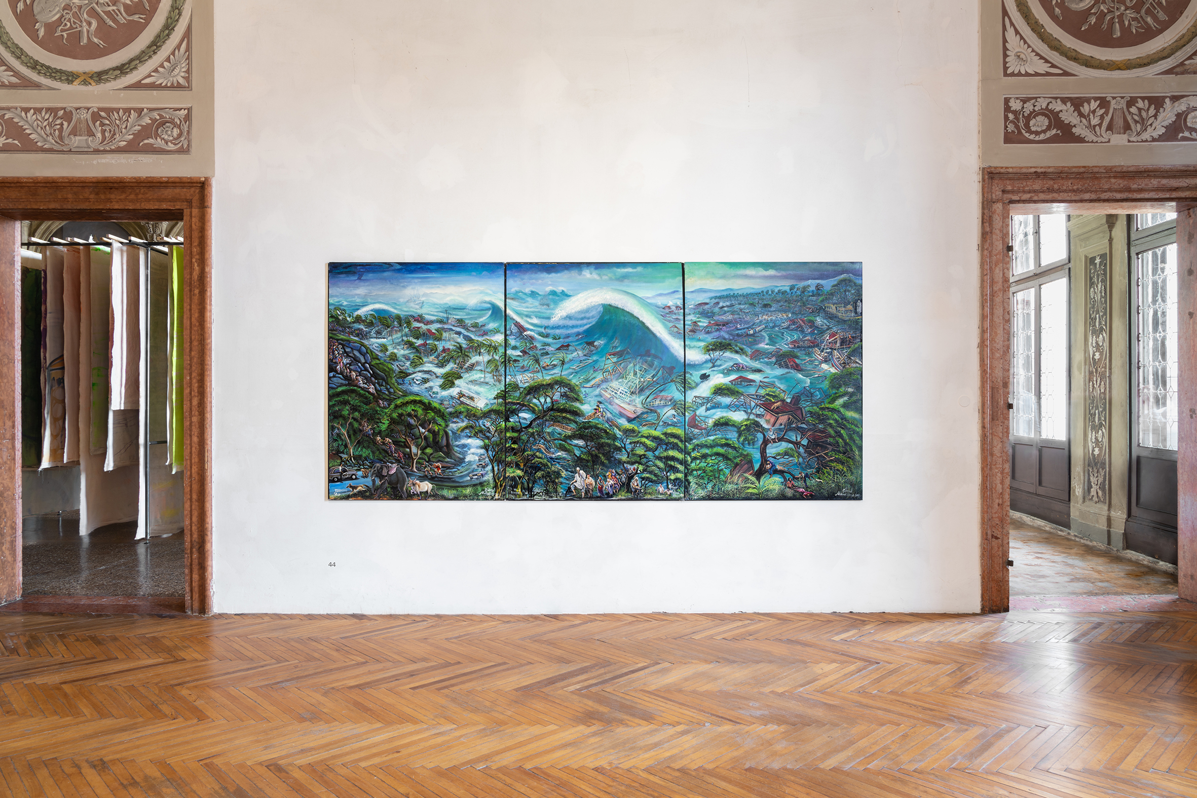 È infatti fondamentale che la riflessione coinvolga e si concentri in particolar modo su quegli ambienti che prima degli altri si trovano a dover fare i conti con l’impatto tremendo dei cambiamenti climatici, come sottolineato da Amitav Ghosh, il cui lavoro è stato di grande ispirazione per lo sviluppo della mostra. Dall’arcipelago delle isole Sundarban, tra il mare e le pianure del Bengala, che sta scomparendo velocemente; passando per le Isole Marshall, come ha raccontato l’attivista Selina Leem; fino alle Hawaii, la cui “scienza indigena” è stata analizzata dall’antropologa e professoressa associata del Dipartimento di Filosofia e Beni Culturali di NICHE, Roberta Raffaetà. È infatti urgente comprendere – non solo razionalmente – che ogni habitat e specie del pianeta è intimamente interconnesso, anche quando non sembra. È fondamentale un radicale cambio di paradigma a tutte le latitudini, soprattutto quelle dei Paesi ricchi e in crescita, perché le conseguenze dei loro sistemi hanno un impatto fortissimo, che prima di manifestarsi nel giardino dei diretti interessati colpisce altre realtà, più piccole, deboli, contribuendo a creare ingiustizie e disparità. Ma secondo Bjorn Stevens – direttore del Max Planck Institute for Meteorology di Amburgo – ormai non è più sufficiente parlare, cosa che accade sempre più spesso e purtroppo in relazione a più o meno raffinati meccanismi di greenwashing, è necessario agire. Per farlo, però, dobbiamo ricominciare a “pensare con gli elementi”, come ben evocava il titolo dell’intervento di Macarena Gomez-Barris, presidente del Dipartimento di Cultura moderna e Media della Brown University di Providence. Azione, pensiero, percezione e parola, infatti, sono un tutt’uno, come ben mostrato da questo capitolo di ricerca veneziana promossa da Fondazione Prada.