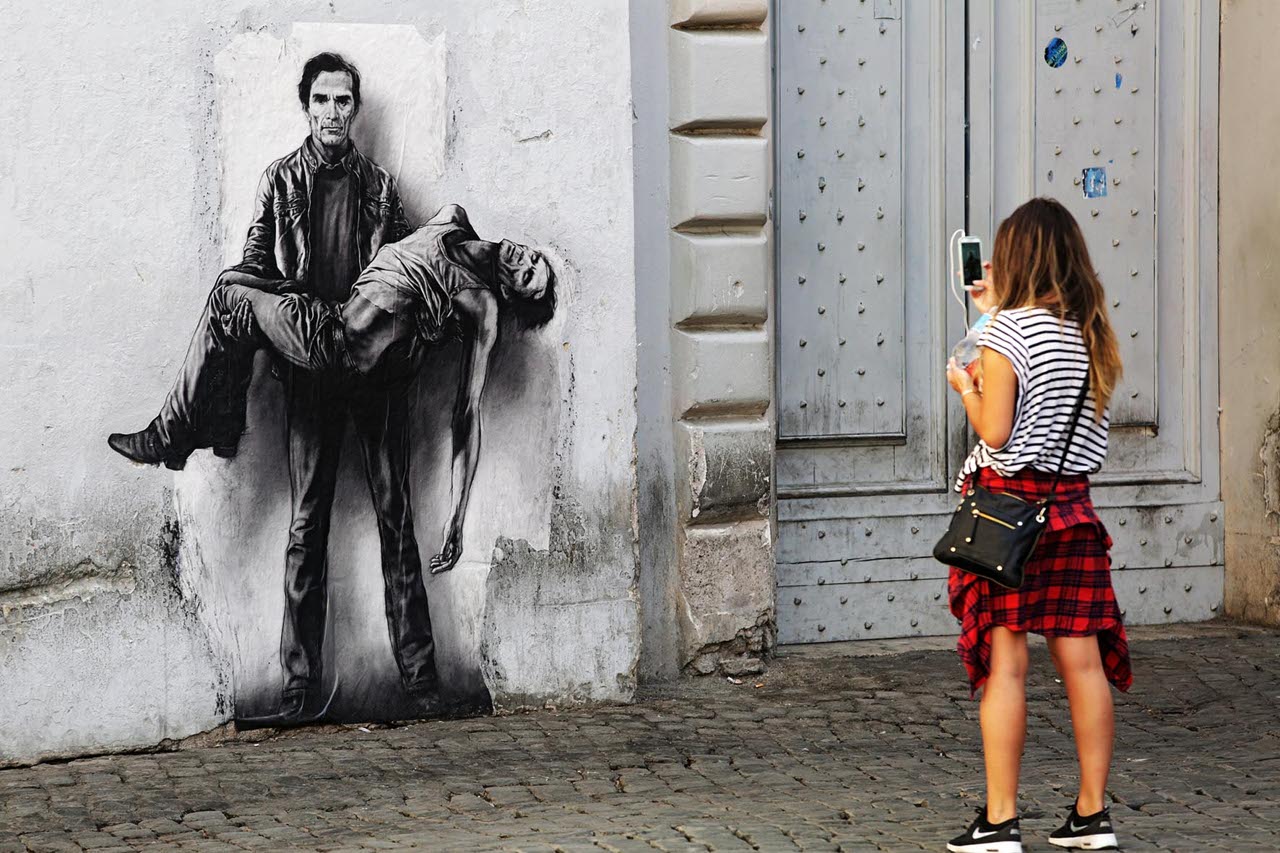 Ancora più ironica la sorte di Pier Paolo Pasolini, il quale fa letteralmente da insegna per Necci, il posto di riferimento nel quartiere romano che lui amava tanto frequentare, ora convertito in un adorabile quanto costoso locale per nuovi abitanti e frequentatori del Pigneto, così diversi da quelli rappresentati dallo scrittore. Il Pigneto, dove Pasolini girò Accattone all’inizio degli anni ’60, è il luogo della gentrificazione capitolina per eccellenza, e insieme agli affitti alti, le hamburgherie e i circoli Arci, la faccia del poeta compare in tutte le forme possibili. I posti che Pasolini frequentava per entrare in contatto con la sua umanità povera e disgraziata ora sono diventati i bar e i ristoranti più fichi della zona, dove per un aperitivo spendi la stessa cifra che ti servirebbe per acquistare la sua intera bibliografia. Così, ironia della sorte, mentre bevi lo Spritz hai il faccione di Pasolini che ti guarda beffardo, come se ti chiedesse scusa per aver trasformato il Pigneto in un parco giochi per “intellettuali”. Proprio lui che ci raccontava di quella Roma così povera e così misera, lui che ci presentava i suoi Ragazzi di Vita liberi e strafottenti… chi gli avrebbe potuto dire che quel quartiere acciaccato dalla guerra sarebbe diventato esattamente l’opposto di ciò che definiremmo uno scenario pasoliniano?