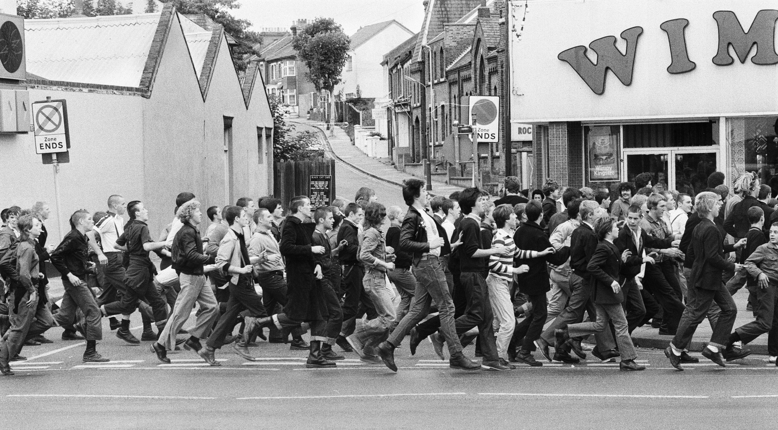 Vestite le marche meno costose che si trovano in giro. Le camicie a scacchi da lavoro o le polo di Fred Perry, i jeans Stra Prest perché non hanno bisogno di essere stirati e soprattutto la G9 Harrington di Baracuta, con il tartan rosso che contrasta con il blu scuro e mostra un’orgogliosa identità cockney, oltre a dare quel tocco di eleganza a un abbigliamento basato solo sulla praticità. Nel tempo libero adorate andare in giro con i “Rude boy”, gli immigrati giamaicani. Loro copiano da voi il look, e voi da loro la musica. Alcuni provano a suonarla e modificarla. La velocizzano, la distorcono, in un melting pot di suoni, colori e culture che fa sempre più rumore e cattura sempre più l’attenzione, in un’Inghilterra – e un’epoca – dove il razzismo è endemico e diffuso. Ma più gente entra, più le divergenze iniziano a farsi sentire. La rabbia sociale ha bisogno di uno sfogo. Risse e scazzottate ai concerti si fanno più frequenti, finché nasce un nuovo nemico comune, i pachistani immigrati, contro cui Skinhead e Rude boys si coalizzano.