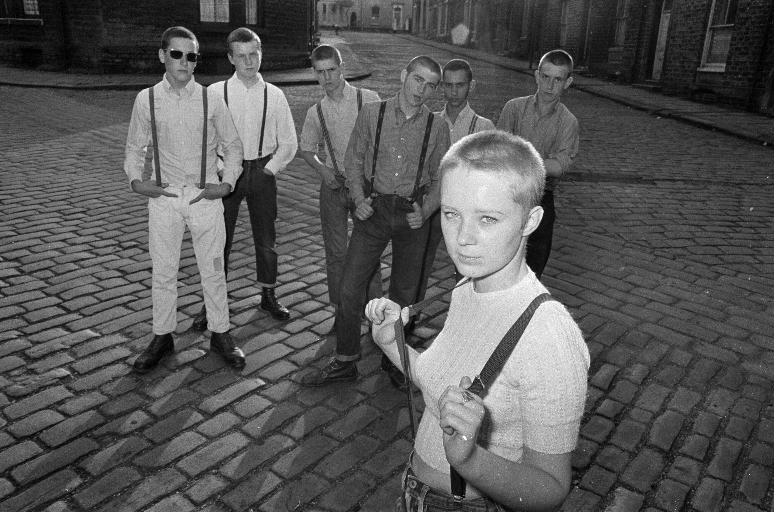Non volete imborghesirvi né sembrare qualcosa che non siete. Siete finalmente orgogliosi di chi siete e da dove venite: mostrate con orgoglio i jeans da lavoro, gli anfibi rinforzati sulla punta, le magliette della salute con le bretelle sopra, come quando lavori in fabbrica e hai paura che le maniche ti rimangano impigliate nei meccanismi. Per proteggerti dal vento metti la giacca G9 che hai visto addosso ad Harrington, il bullo – buono – della telenovela Peyton place. Quelli che non riescono a trovarla, invece, si accontentano dei bomber da aviatore dell’esercito americano. Tutte quelle teste rasate ai concerti si fanno notare, e dopo vari soprannomi cominciano a chiamarvi “Skinhead”. E vi vogliono tutti bene. Siete parte di una comunità più grande, quelli un po’ strani, ma accomunati dalla passione per il reggae, il lavoro duro e il calcio come riscatto sociale.