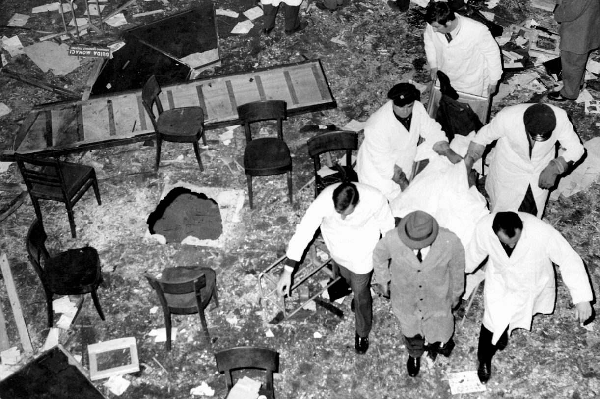 Nelle carceri i detenuti si ribellano chiedendo di poter fare assemblee e creare comitati di controllo, vogliono apertura all’esterno con possibilità di colloqui a tempo illimitato e diritto ai rapporti sessuali. Sia Francia che Italia sono pervase da utopie spesso esasperate, in cui gli studenti occidentali sognano l’economia dell’Unione sovietica, e gli operai dell’Unione sovietica sognano l’economia occidentale. Il 25 aprile 1969, alla fiera di Milano, alle ore 19 esplode una bomba allo stand della Fiat. È un orario perfetto per non colpire il pubblico – la fiera ha già chiuso – e fa solo cinque feriti lievi. Ne viene trovata un’altra, inesplosa, alla stazione centrale. Giornali e manifestanti sono confusi su come reagire, perché una bomba non è una zuffa di piazza; chi l’ha messa? Le indagini sono appena iniziate che l’8 agosto, alle 23.30, un ferroviere trova un ordigno esplosivo sul treno 154 Trieste-Domodossola. Gli artificieri lo disinnescano mentre, contemporaneamente, all’1.30 esplode una bomba sul Trieste-Roma all’altezza di Mira (VE), ferendo un uomo. All’1.25, sul Venezia-Milano all’altezza di Grisignano (VI) esplode una bomba nascosta sotto i sedili. Stessa ora, a Pescara, tre feriti. Un’altra ancora in Abruzzo, in Campania, in Trentino. All’alba del 9 agosto, con tutte le ferrovie italiane paralizzate, il bilancio è di otto bombe esplose, due disinnescate e 12 feriti. L’Italia è sotto shock, non capisce come si sia potuto arrivare a quel punto, mentre destra e sinistra si accusano a vicenda. Gli inquirenti, studiando le bombe e la loro posizione, notano che vengono piazzate più con l’intento di dimostrare che di uccidere. Fare una strage allo stand di Milano o su un treno, dopotutto, è semplicissimo.