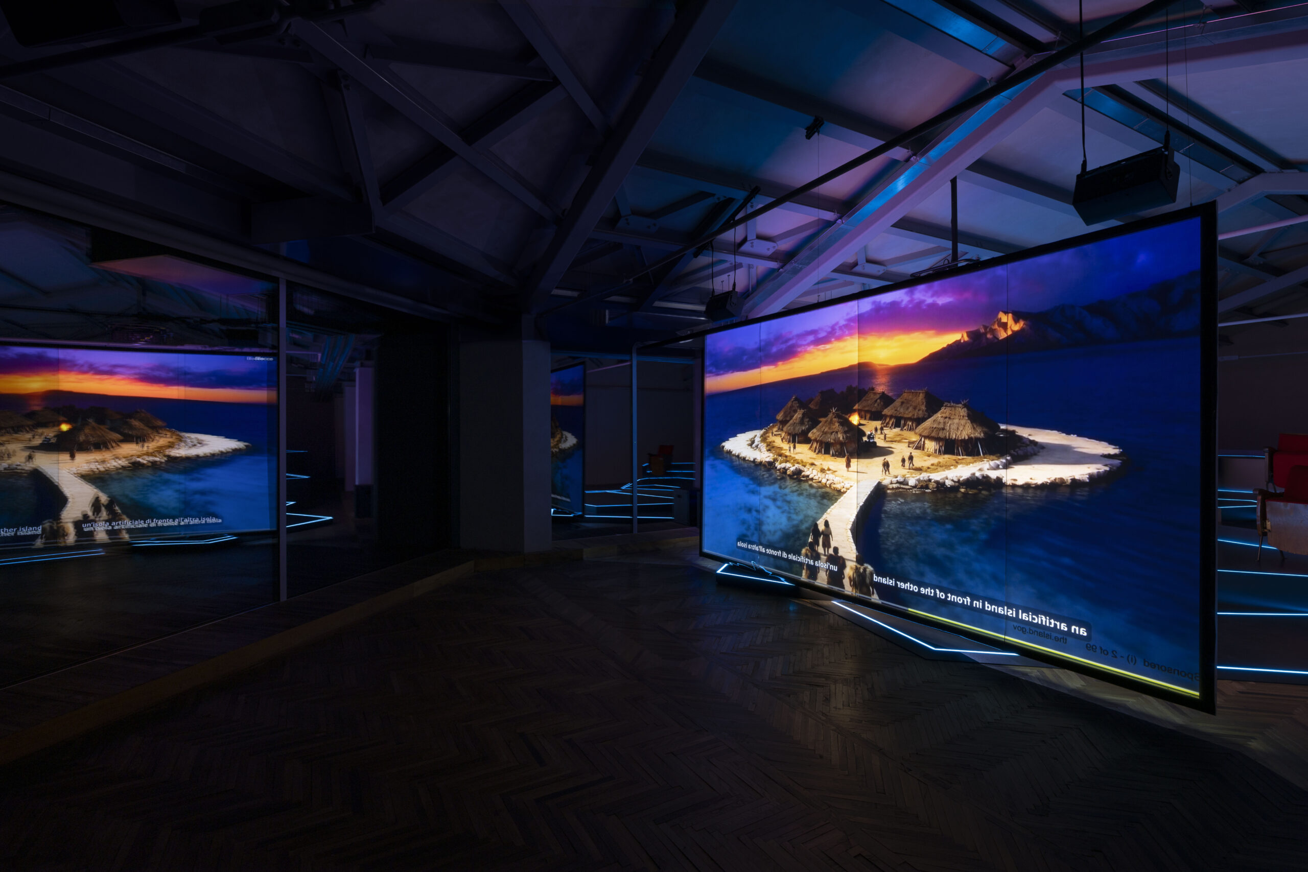 La fisica quantistica è un sistema di relazioni in cui tutti siamo coinvolti, è questo il legante principale che tiene insieme l’ultimo progetto site-specific dell’artista, regista e filosofa tedesca Hito Steyerl, The Island, allestito negli spazi dell’Osservatorio, di Fondazione Prada, a Milano, fino al 30 ottobre 2026. L’esperienza di altri possibili mondi che facciano collassare il nostro sembra accomunare gli autori di fantascienza – altro tema fondante della mostra incarnato dallo scrittore Darko R. Suvin, tra i principali teorici del genere – così come, secondo lo storico statunitense Richard Rhodes, la vita di alcuni di quelli che poi divennero tra i più grandi scienziati del Novecento, se con questo intendiamo persone che hanno scoperto meccanismi in grado di cambiare a loro volta la realtà in cui viviamo – è stato così quantomeno con l’energia nucleare. Il trauma, la spaccatura che fende il presente percepito, si fa porta oltre cui immaginare altro, che a volte significa scoprire, andare oltre, illuminare fenomeni misteriosi, oscuri, fino a prima invisibili, a volte queste porte si socchiudono sulla stessa visione, sulla stessa dimensione, è un fenomeno raro, incredibile, ma può accadere. Assomiglia alla magia. Non a caso secondo la teoria antropologica di Ernesto De Martino la magia è una specifica istituzione culturale che nasce da una crisi esistenziale per difendere la “presenza” umana, garantendo la sicurezza di fronte agli eventi traumatici della vita.