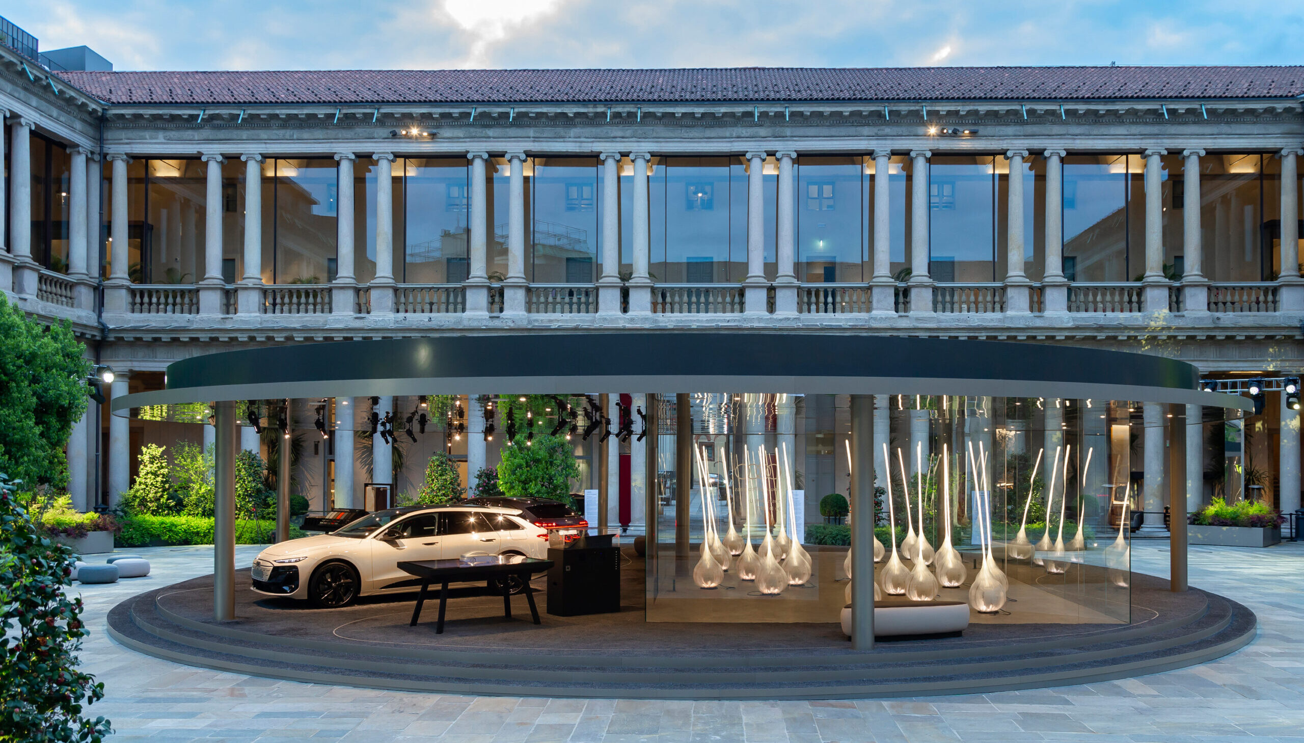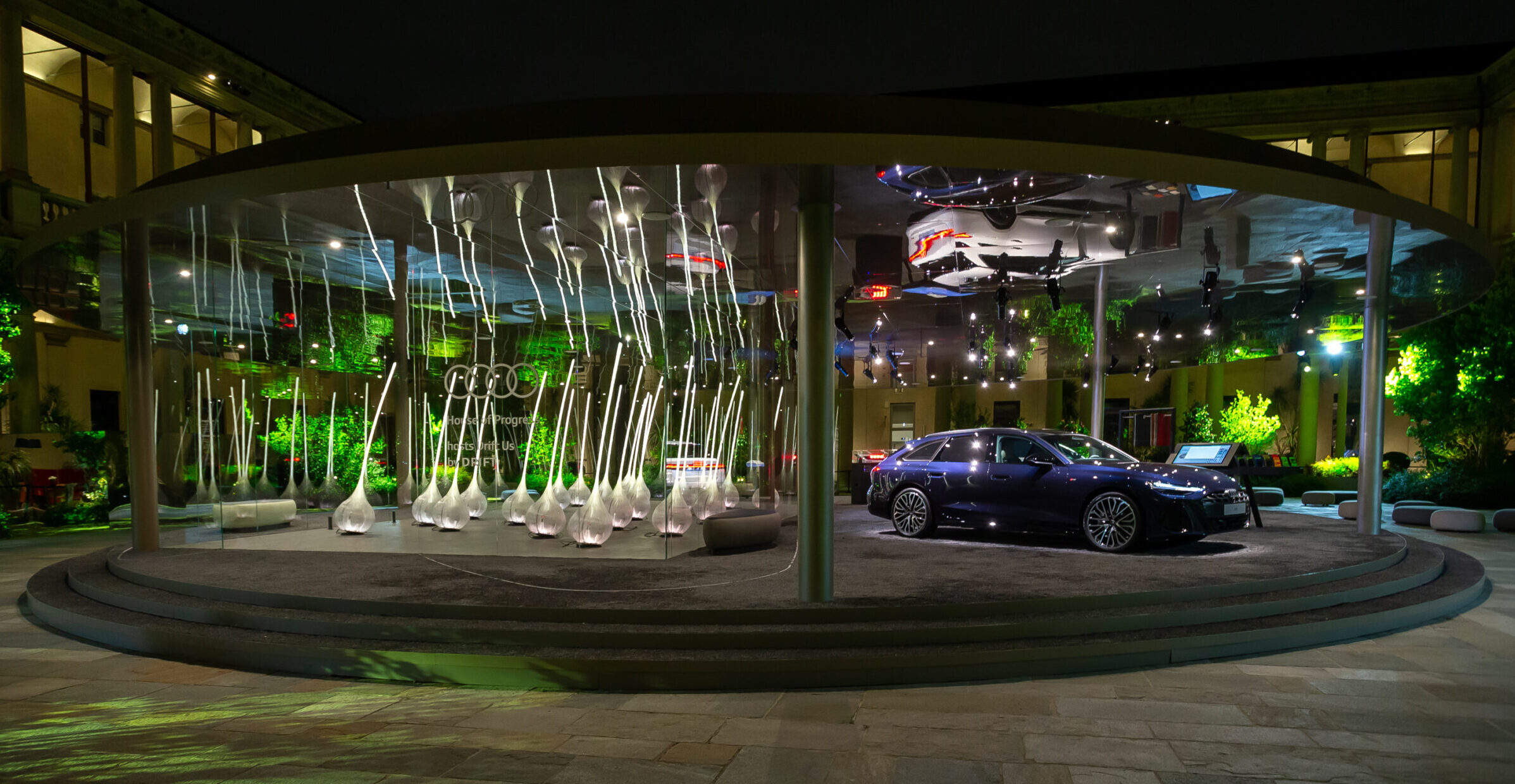 “Flexability”: flessibilità e abilità, capacità di flettersi, di essere elastici, duttili e adattabili. È questa crasi concettuale che caratterizza la presenza di Audi durante l’edizione 2025 della Design Week di Milano, e dà vita a un apax capace di sintetizzare l’impegno e la direzione assunta da tempo dall’azienda. E quest’anno informa il concept dell’Audi House of Progress, l’hub creativo di Audi progettato dallo studio olandese Drift nel cortile storico del Portrait Milano, in Corso Venezia 11 dal 7 al 13 aprile, nell’ambito della mostra-evento di Interni CRE-ACTION. La flessibilità infatti assume diverse sfaccettature, e in primis dà una sfumatura all’innovazione tecnologica del brand, che espone in anteprima mondiale la nuova A6 Avant, basata sulla piattaforma premium termica PPC. Questa visione olistica, che mescola umanesimo e scienza, sarà affidata anche ai messaggi di CRE-ACTION, che evidenzia come dalla fusione di “flexibility” ed “ability”, appunto, scaturisca il concetto che traccia il perimetro circolare in cui si iscrive l’installazione site specific “Drift Us”. L’opera, realizzata da Drift, immersiva e interattiva, è composta da ventidue steli luminosi che si attivano al passaggio dei visitatori e si ispira al movimento impresso da una folata di vento su una distesa d’erba. Il sovrapporsi di stimoli sensoriali legati a luce, suono e movenze crea una particolare coreografia, pensata per avvolgere il pubblico, i passanti e i visitatori, così come le vetture esposte e l’ambiente circostante, generando un intimo e affascinante dialogo collettivo.