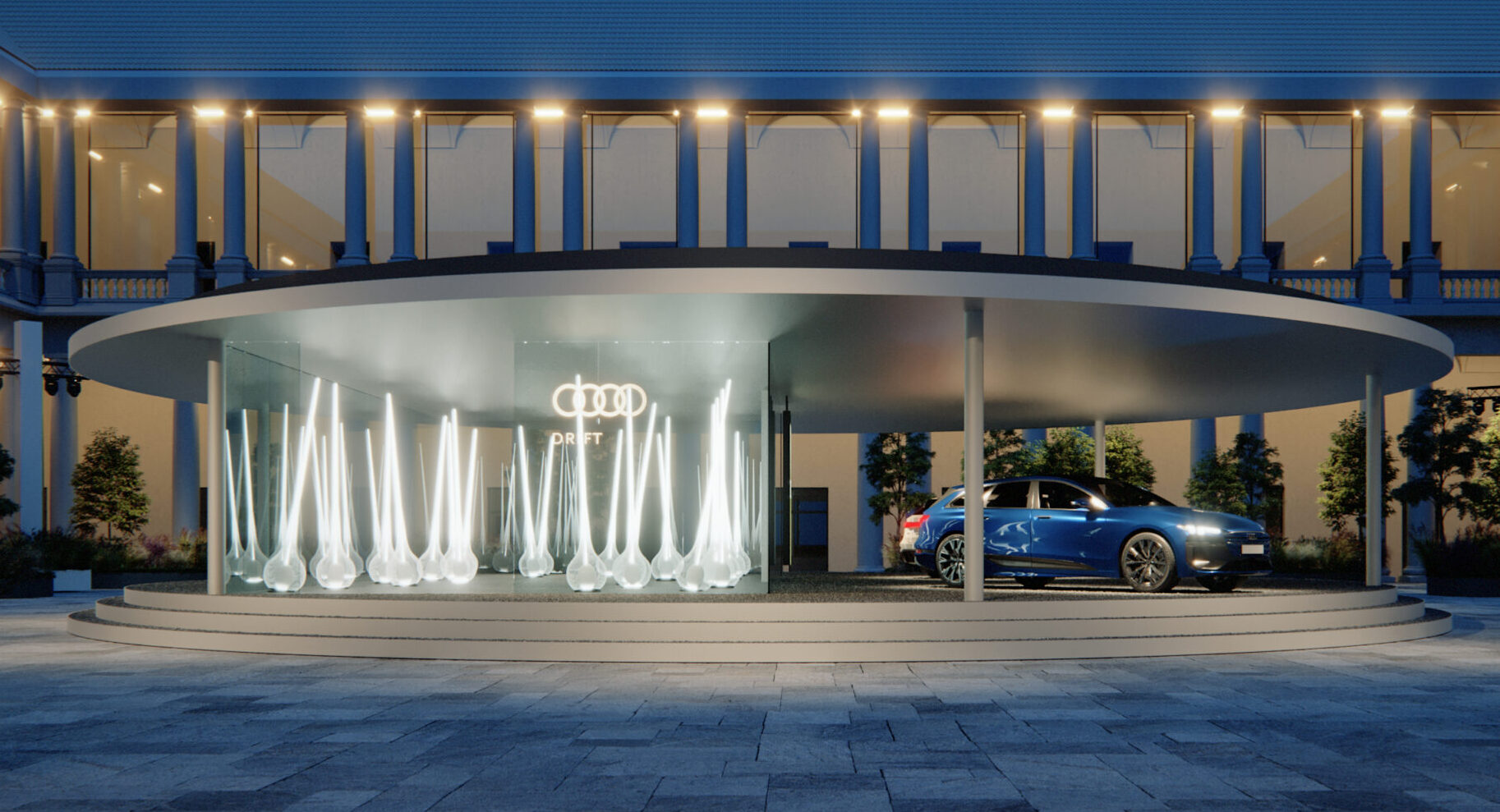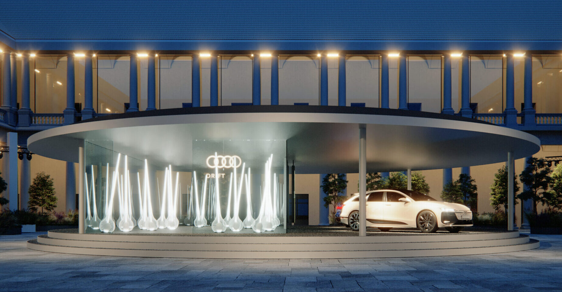 Drift, fondato nel 2007, dagli artisti olandesi Lonneke Gordijn e Ralph Nauta, è composto da un team multidisciplinare di 65 persone, ed è famoso per il suo lavoro su sculture esperienziali, installazioni e performance, con opere esposte tra gli altri al CCBB di Brasilia, alla Biennale di Venezia, al Victoria & Albert Museum e al Met Museum, e parte delle collezioni permanenti di alcuni dei più prestigiosi musei del mondo. In particolare, l’attenzione dello studio, che non potrebbe essere più adatto a dar forma ai valori di Audi, si focalizza sulla ricerca nel manifestare i fenomeni e le proprietà nascoste della natura attraverso l’uso della tecnologia, con l’obiettivo di ispirarsi e imparare dai meccanismi alla base del nostro ambiente per tentare di ristabilire un legame profondo con esso. Coniugando profondità di sguardo e semplicità formale, le opere di Drift mettono in luce i parallelismi tra le strutture artificiali e quelle organiche attraverso processi decostruttivi, interattivi e innovativi. Gli artisti si impegnano a porsi e a porci domande fondamentali su cosa sia la vita e a immaginare un possibile scenario positivo per il nostro futuro, mettendo in risonanza persone, spazi e ambiente, creando esperienze che stimolino una nuova sensibilità e connessione con il nostro pianeta.