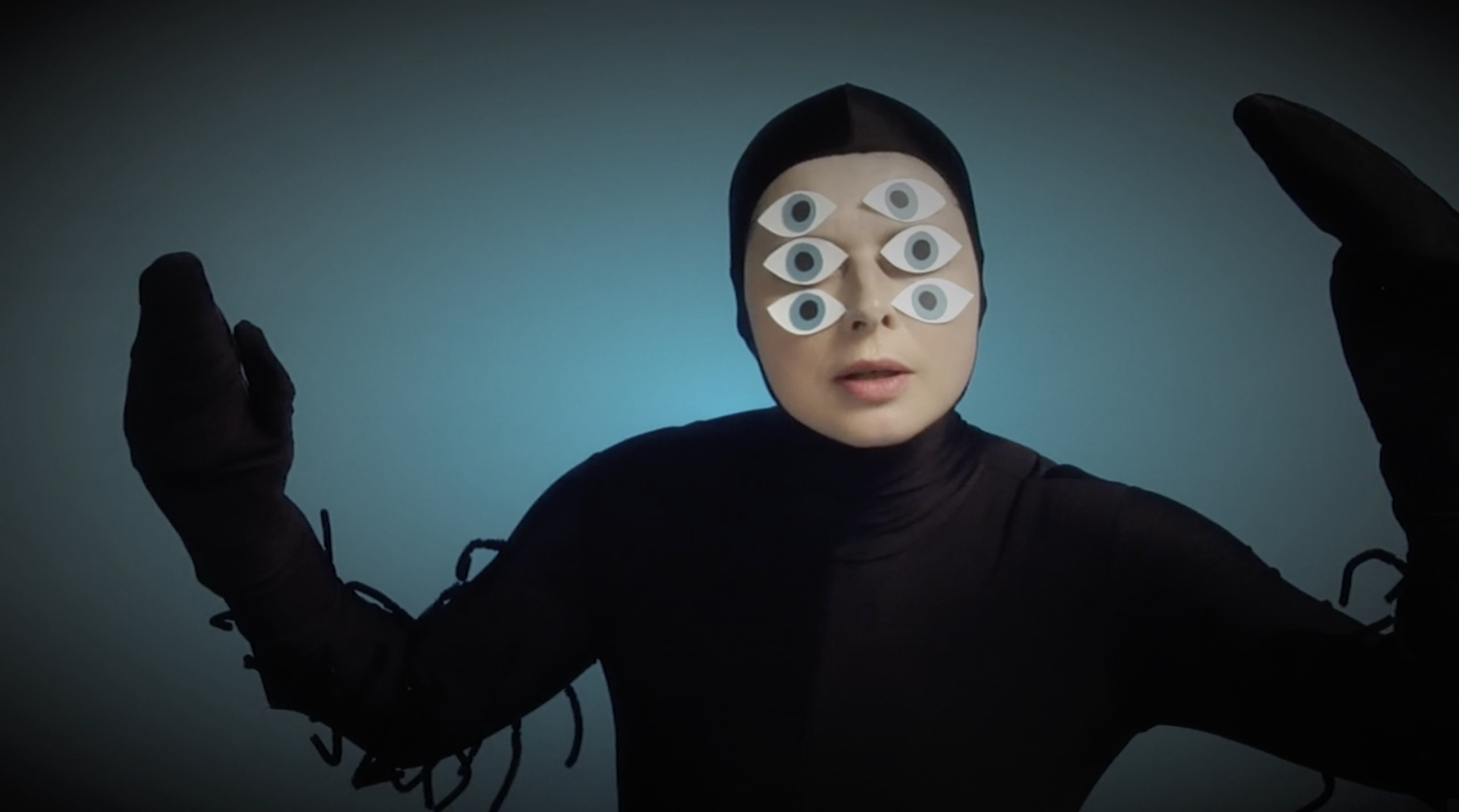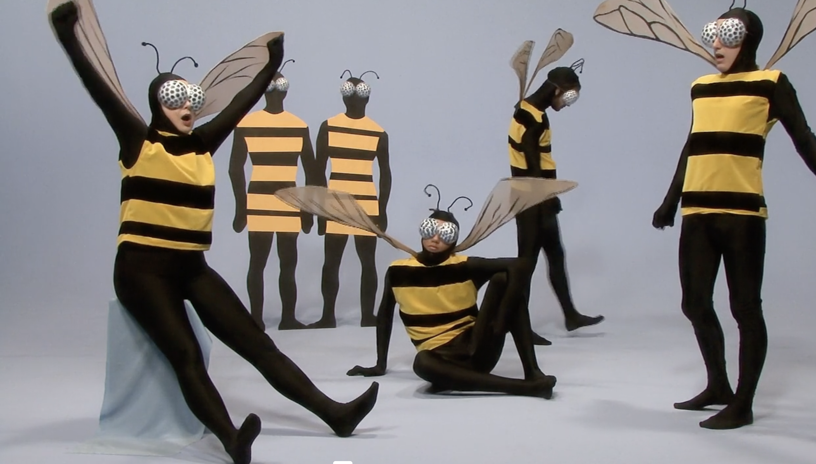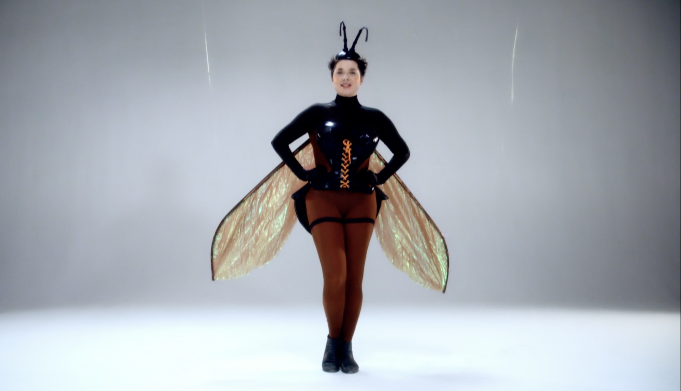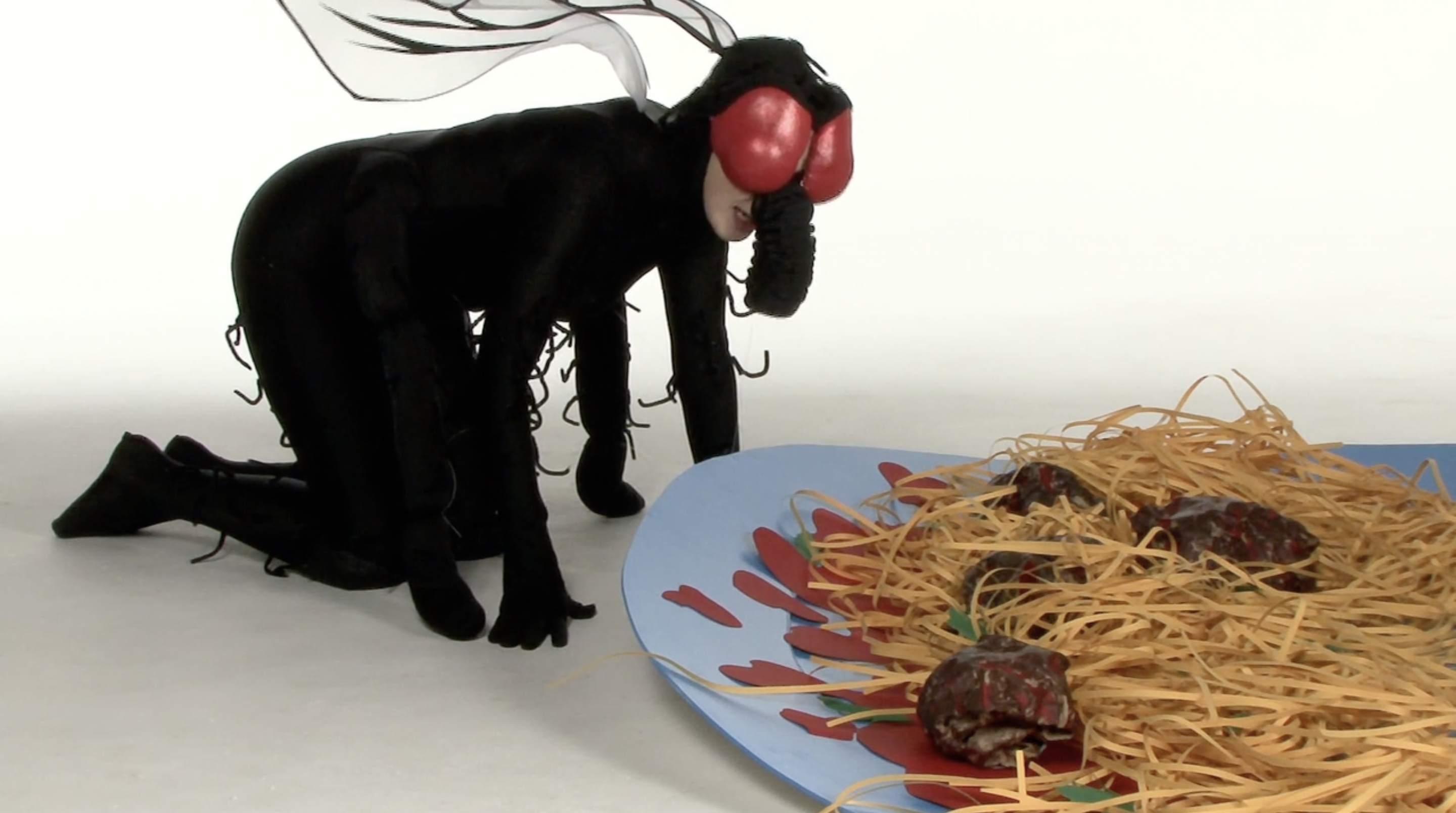 I corti di Rossellini sul mondo animale ricordano qualcosa a metà tra l’immaginario onirico di Michel Gondry, in particolare col sapore de L’arte del sogno, e le scenografie di un programma per bambini, a metà tra la bidimensionalità della carta e le strutture di gommapiuma o altri materiali morbidi ma duttili, malleabili e capaci di ottenere un ingombro. L’immaginazione infatti spesso assume forme tratteggiate, fulminee, rapide, che sacrificano il dettaglio ai sensi, alla possibilità della mente di attingervi grazie alla creazione di una scena fantastica, immaginaria. I costumi da animale che l’attrice indossa sono ingombranti. Sono l’opposto della nudità. Ricordano gli imbarazzanti costumi che sono costretti a indossare mascotte sottopagate nei parchi divertimento. Così il corpo dell’animale – l’alterità indossata – diventa una maschera assoluta, che non occupa più solo il volto come nella commedia dell’arte italiana, o nelle cerimonie animiste africane – ma tutta la figura. L’opposto della nudità, insomma, che qualcuno potrebbe pensare fondamentale per approcciare il sesso. Eppure, in questa goffaggine, la percezione cambia, cambia l’istinto, cambiano le voglie, cambino i fini, cambiamo noi e cambia il nostro modo di vedere le cose. Appariamo buffi perché ci prendiamo sul serio, meglio, ci immedesimiamo completamente nella forma che abbiamo assunto, più o meno per scelta, più spesso subendo la pressione del contesto su di noi – sostanzialmente sotto forma di trauma.